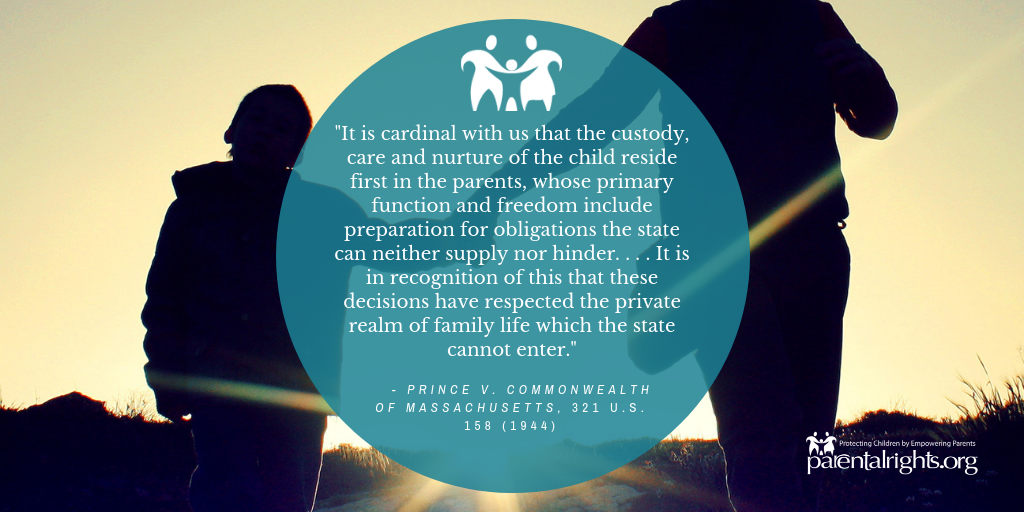 This belief has been upheld in numerous Supreme Court cases that reflect the American people's longstanding commitment to parental rights. The excerpts below are drawn from key Supreme Court cases protecting the right of parents to raise their children. The principles below are referred to as the Parental Rights Doctrine.