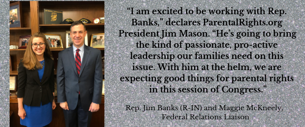 Last month we met with Rep. Jim Banks (R-IN), and he agreed wholeheartedly to become the lead sponsor of the Parental Rights Amendment in this new session of Congress.